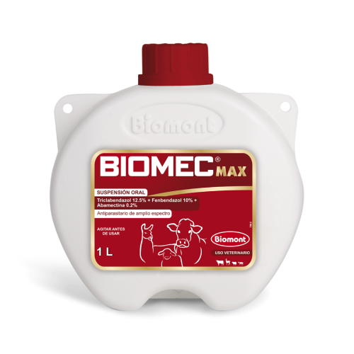 BIOMEC MAX está indicado para el tratamiento y control de nemátodos gastrointestinales, nemátodos pulmonares, céstodos (tenias), ectoparásitos y todos los estadios de desarrollo de Fasciola hepatica (inmaduras jóvenes, inmaduras y adultas) desde la primera semana de edad.