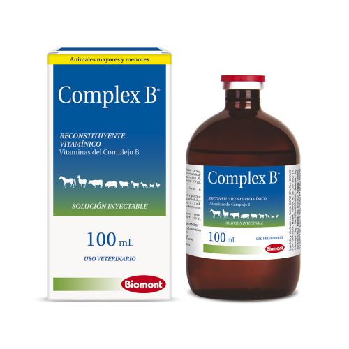 COMPLEX B está indicado en casos de debilidad general, desgaste físico, retardo del crecimiento, anorexia, anemia, deshidratación, neuritis, neuralgias, polineuritis, irritabilidad, nerviosismo, incoordinación de los miembros del tren anterior y posterior, ataxia, calambres, dermatitis, disturbios gastrointestinales. Coadyuvante durante el curso o convalecencia de enfermedades infecciosas y/o parasitarias.