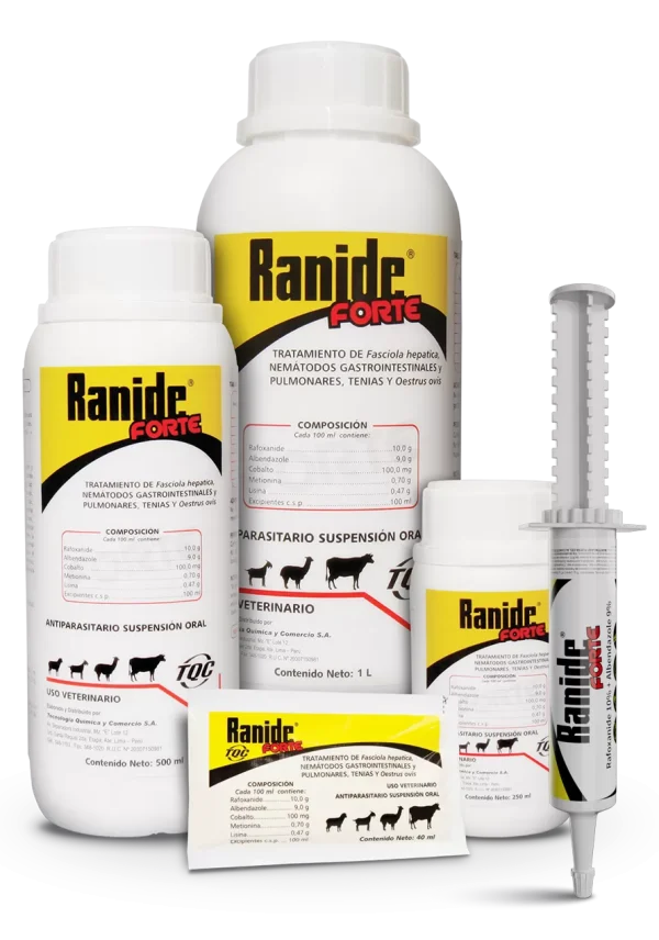 - Indicado para el control y tratamiento de las formas adultas y juveniles de Fasciola hepática, nematodos gastrointestinales: Ostertagia sp. (incluidas las larvas inhibidas o hipobióticas), Haemonchus spp., Trichostrongylus spp., Nematodirus spp., Cooperia spp., Oesophagostomum spp., Bunostomun spp., Chavertia ovina, Lamanema chavezi, Graphinema aucheniae, Trichuris spp., nemátodos pulmonares, Dyctiocaulus spp., tenias: Moniezia spp., larvas de Oestrus ovis (gusano de la nariz).